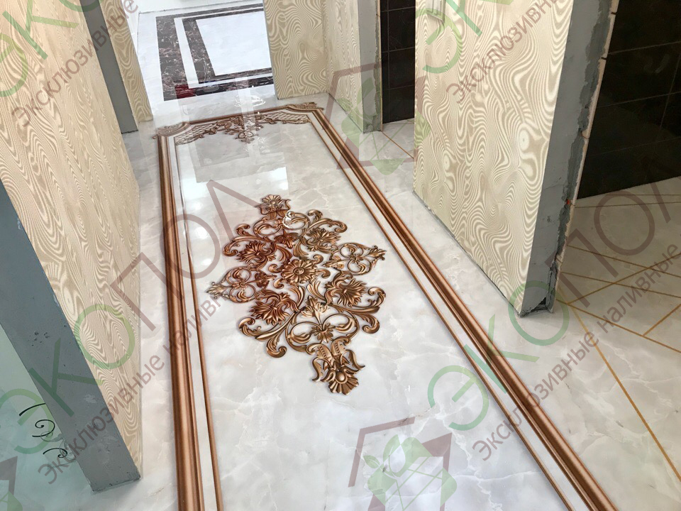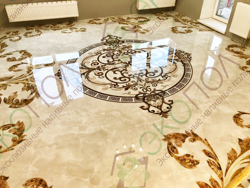 На сегодняшний день наливные полы завоевали огромную популярность среди напольных покрытий. Связанно это не только с простотой в уборке, а также из-за разнообразия в дизайне. Нанести любое изображение на пол раньше казалось невозможно. Наливной декоративный пол оригинальный и очень прочный. Он подчеркнет дизайн вашего помещения или станет его изюминкой. Мы рекомендуем делать полы с узором в помещениях где вы находитесь длительное время, в интерьерах классического дизайна или в стиле Хай-Тек. Для создания узоров можно использовать пленочный трафарет или работу художника. Элементами декора могут быть и различные предметы: ракушки, монетки и многое другое. Заказать пол с узором в компании «ЭКОПОЛ» очень легко, при этом мы гарантируем, что вы получите качественное напольное покрытие. Мы учитываем все ваши пожелания, а также сделаем наливной пол по приемлемой цене.